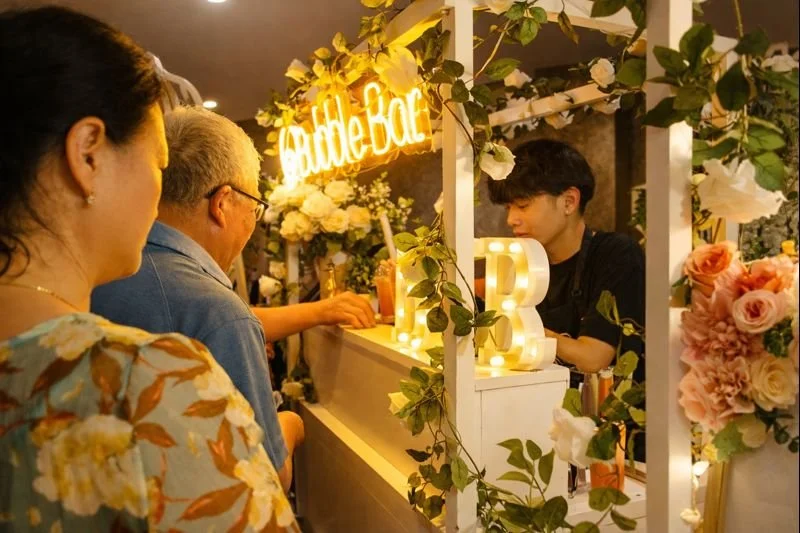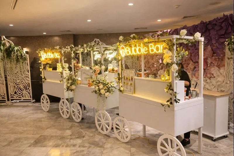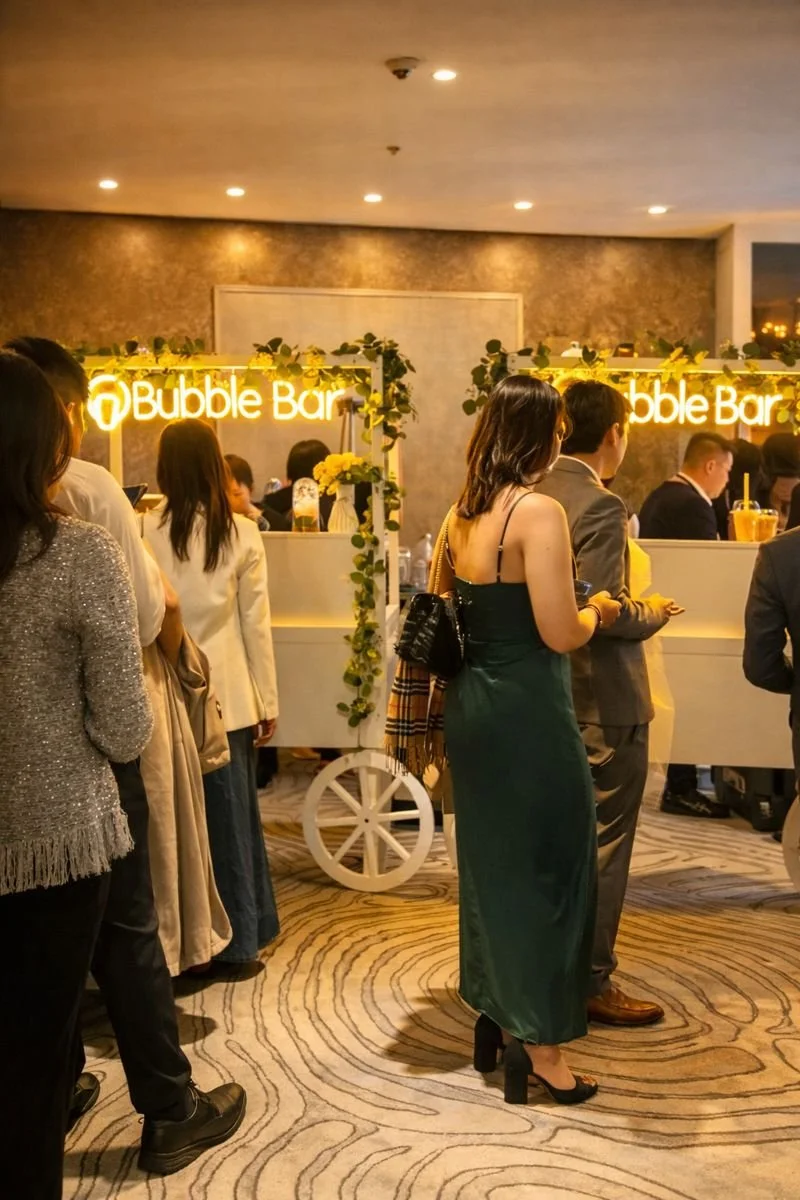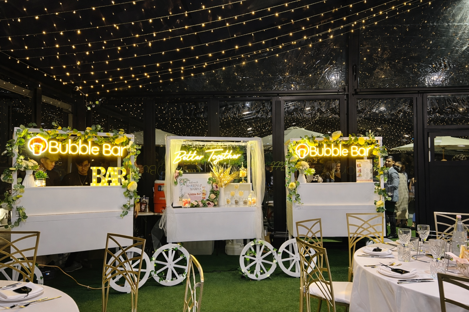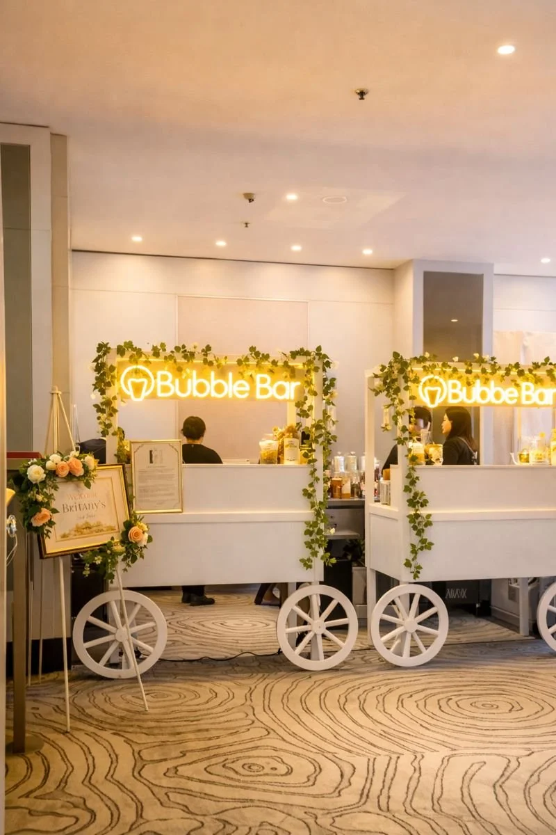 The Signature Bar is designed for medium to large celebrations of 150–240 guests, offering a more elevated and immersive drink experience. With an enhanced Bubble Bar setup, professional bartenders, and an expanded menu of signature drinks, this package brings energy, style, and variety to your event — creating a vibrant bar atmosphere that keeps guests engaged and refreshed throughout the celebration.